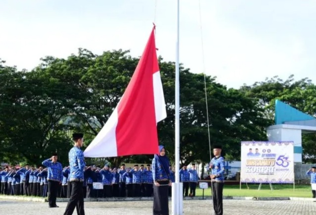 Upacara HUT KE-53 korpri tingkat provinsi Gorontalo diisi dengan penyerahan surat keputusan kepada ASN yg memasuki masa purna bakti. Di serahkan pula satya lencana karya satya 10, 20 dan 30 tahun, serta santunan duka kepada ahli waris ASN yang meninggal dunia.(Ruklieyato)